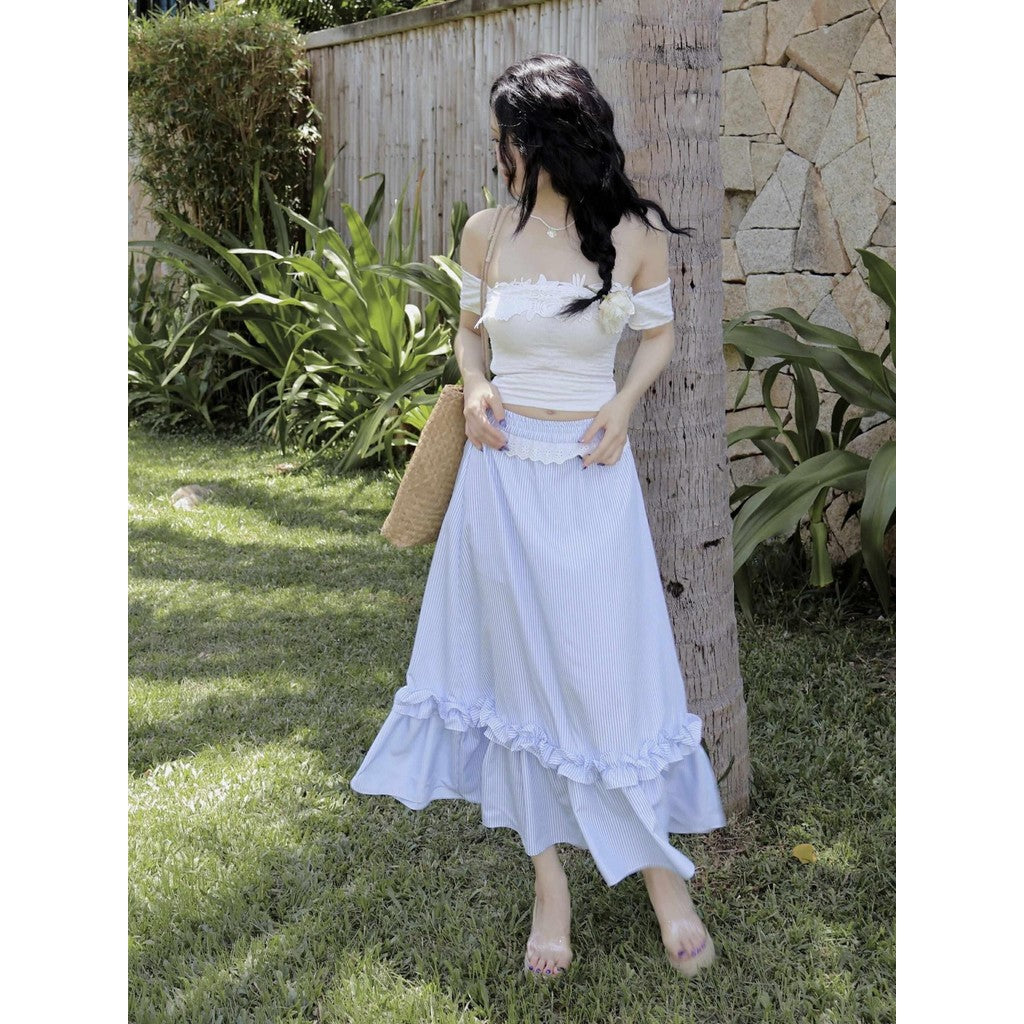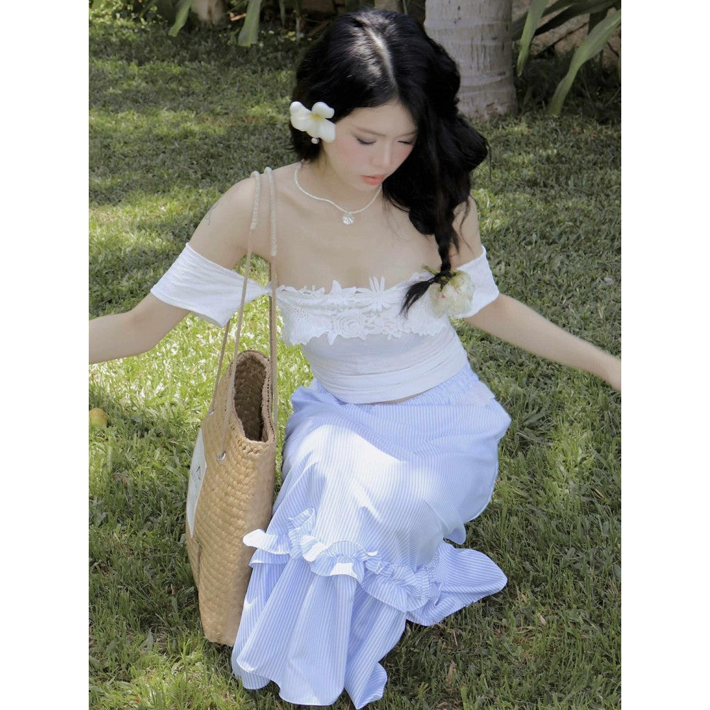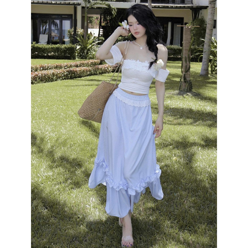 Aguja Coban T-Shirt & Lace Maxi Skirt Set (Pre-order)