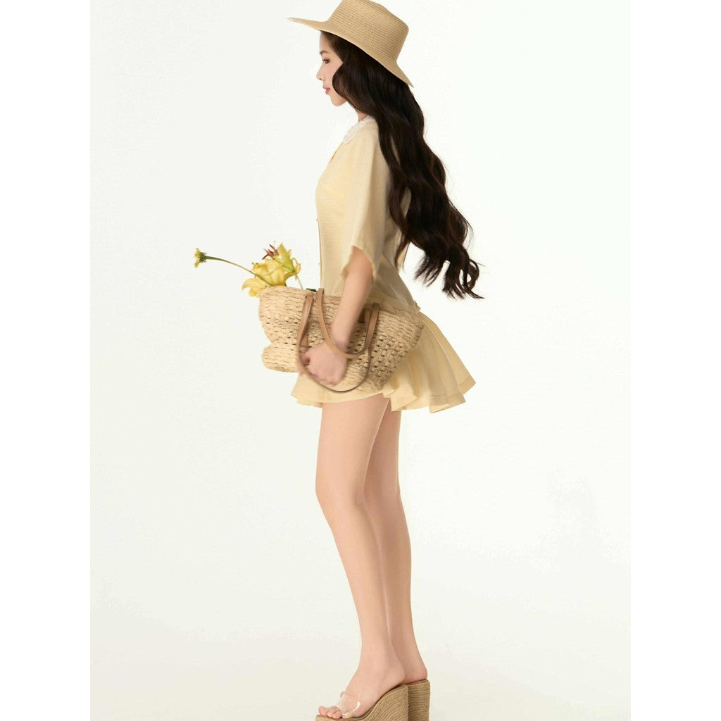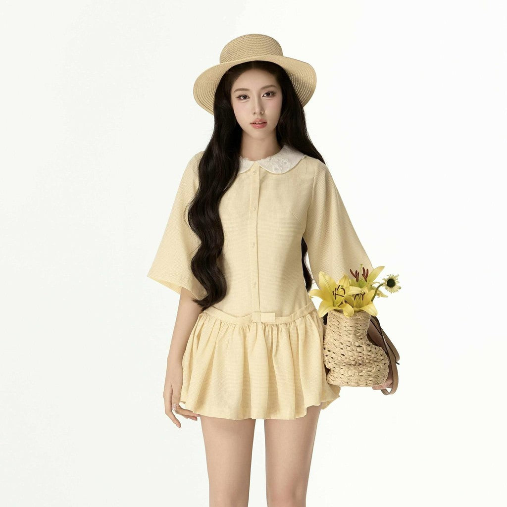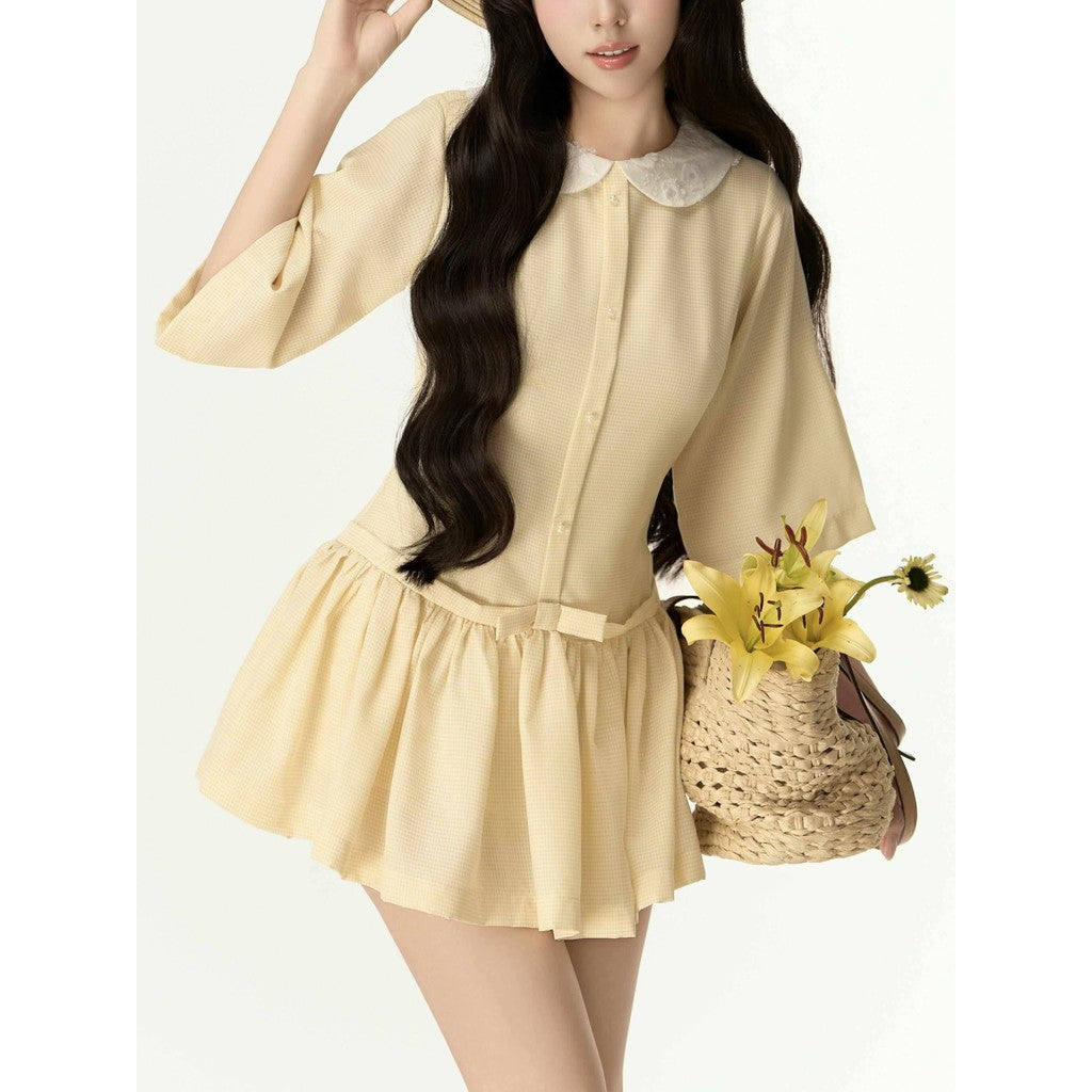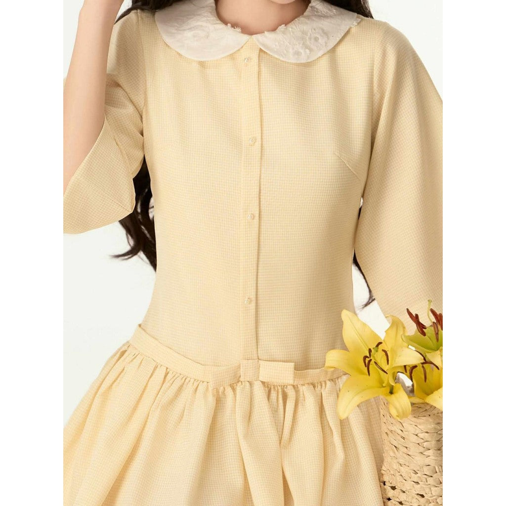 Aguja Xavier Yellow Checkered Cotton Dress (Pre-order)